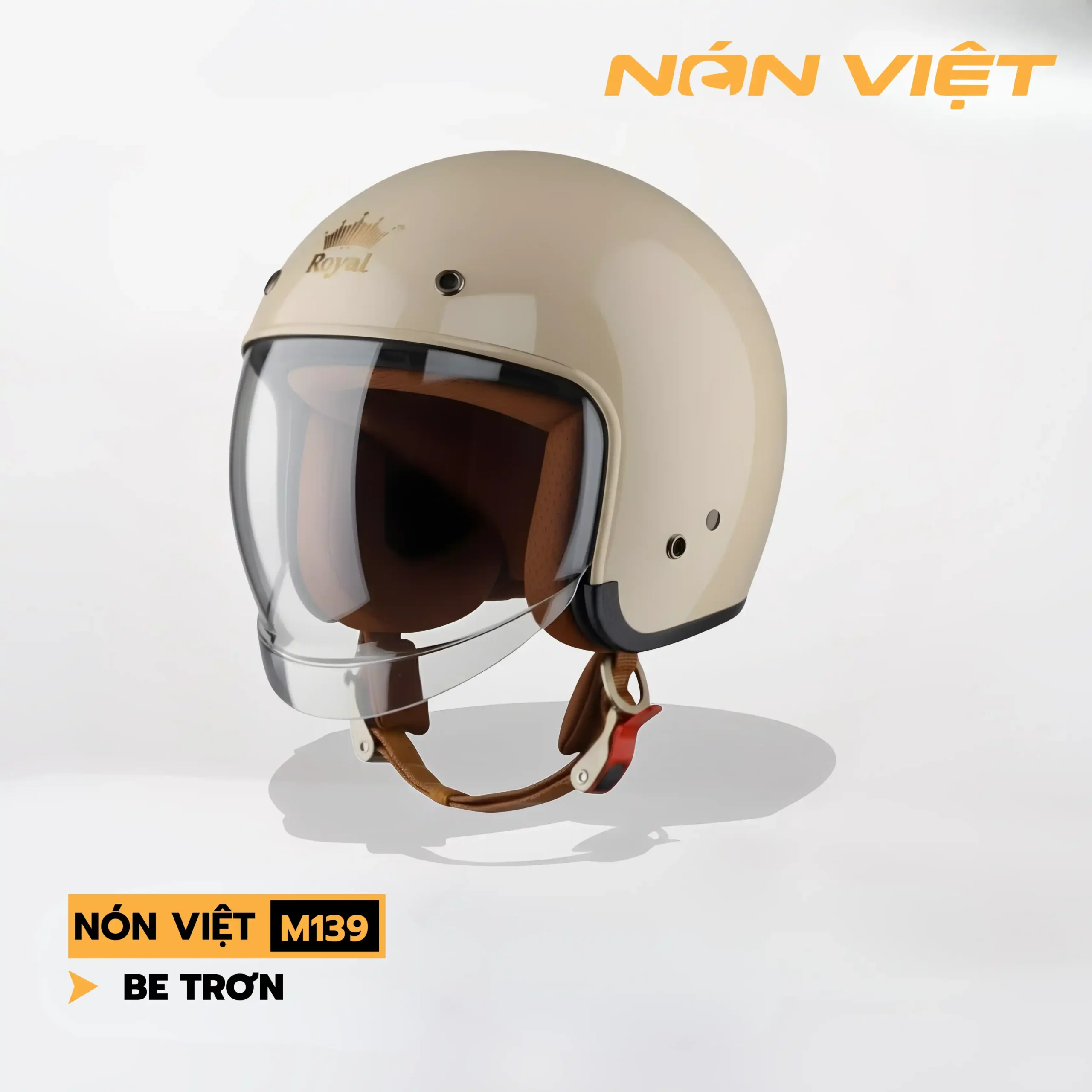 - Mũ bảo hiểm 3/4 M139 có kính ẩn Royal màu Be