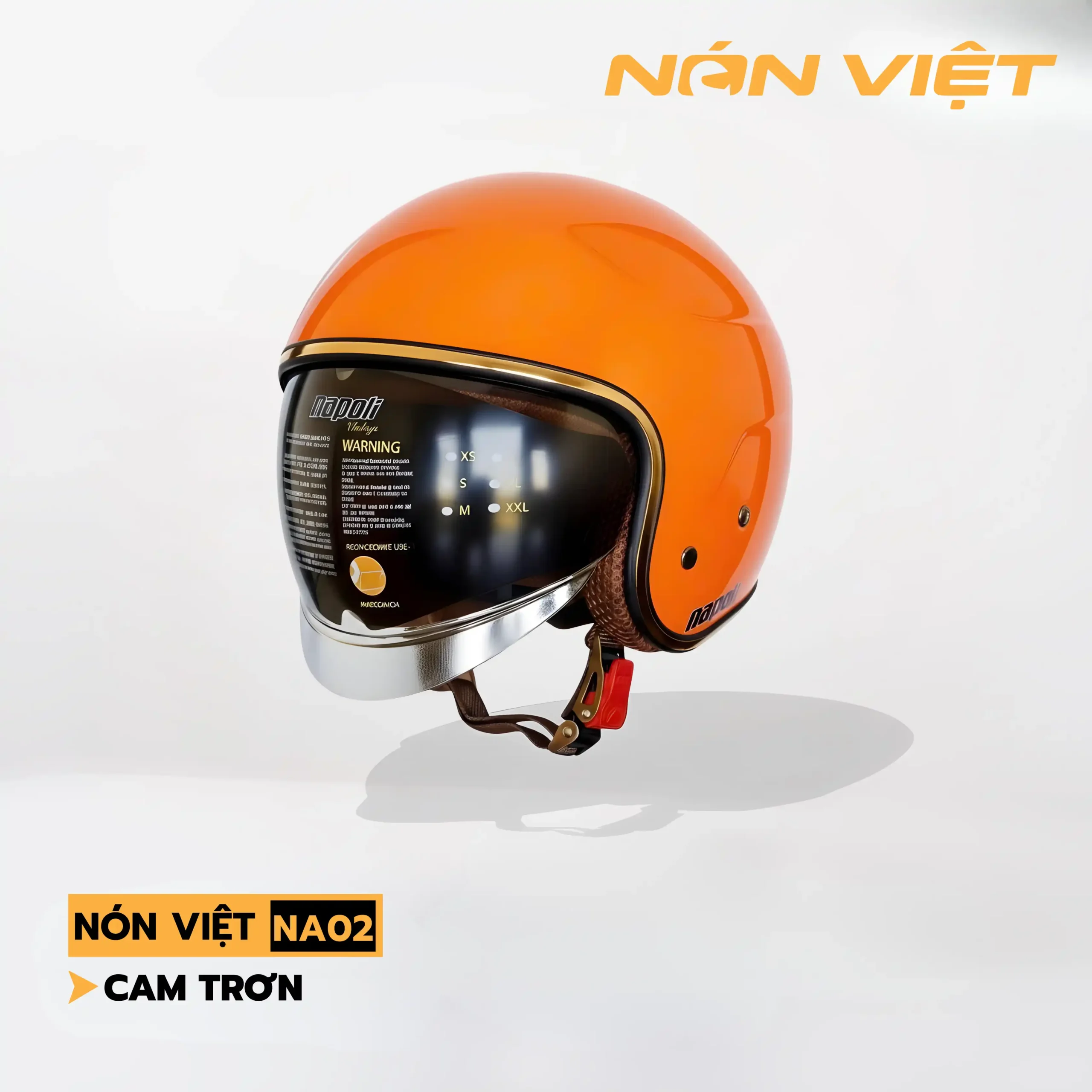 - Mũ bảo hiểm 3/4 kính âm Napoli màu cam
