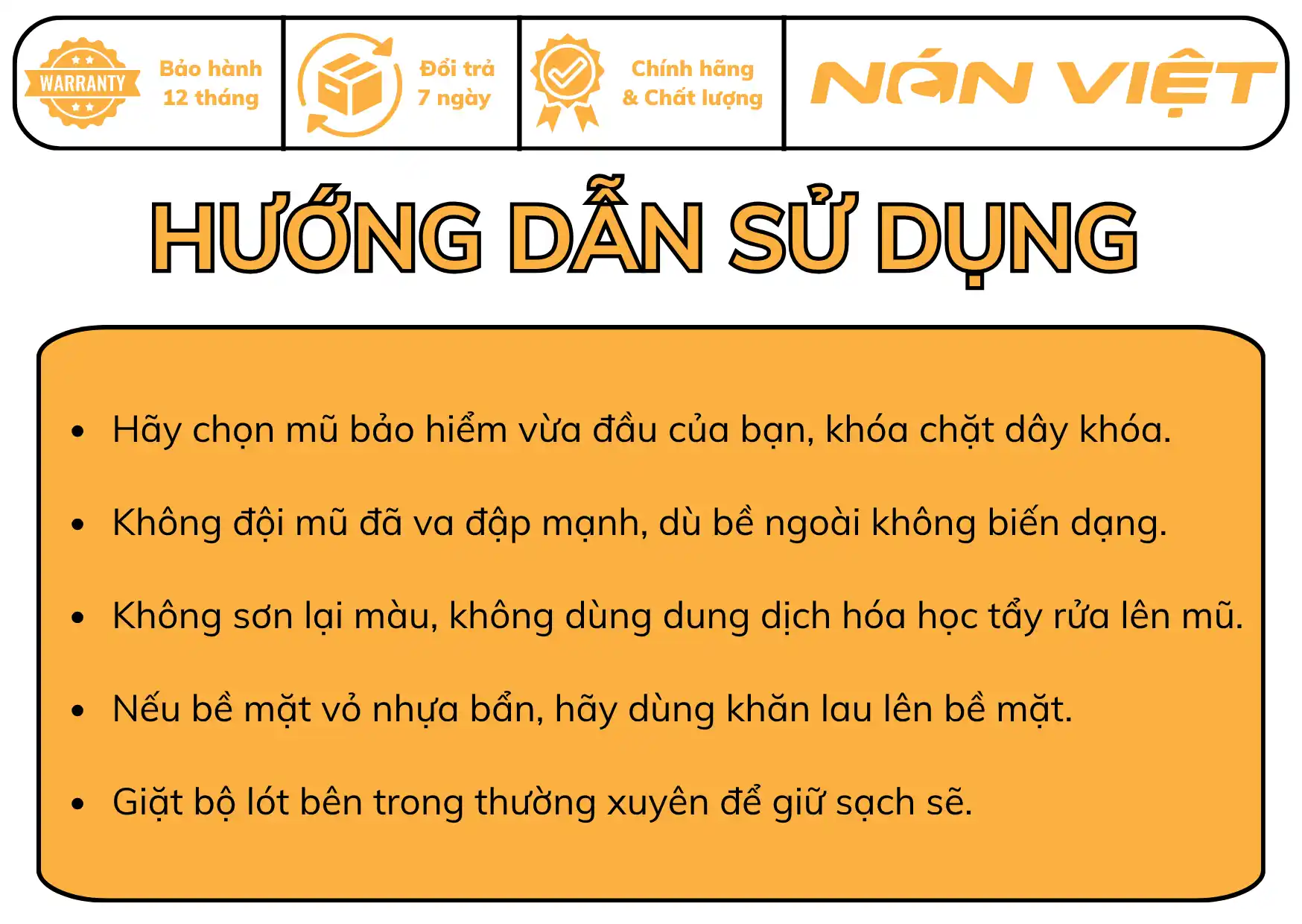 - Bảo quản mũ ở nơi khô ráo, thoáng mát, tránh để trong cốp xe quá nóng.