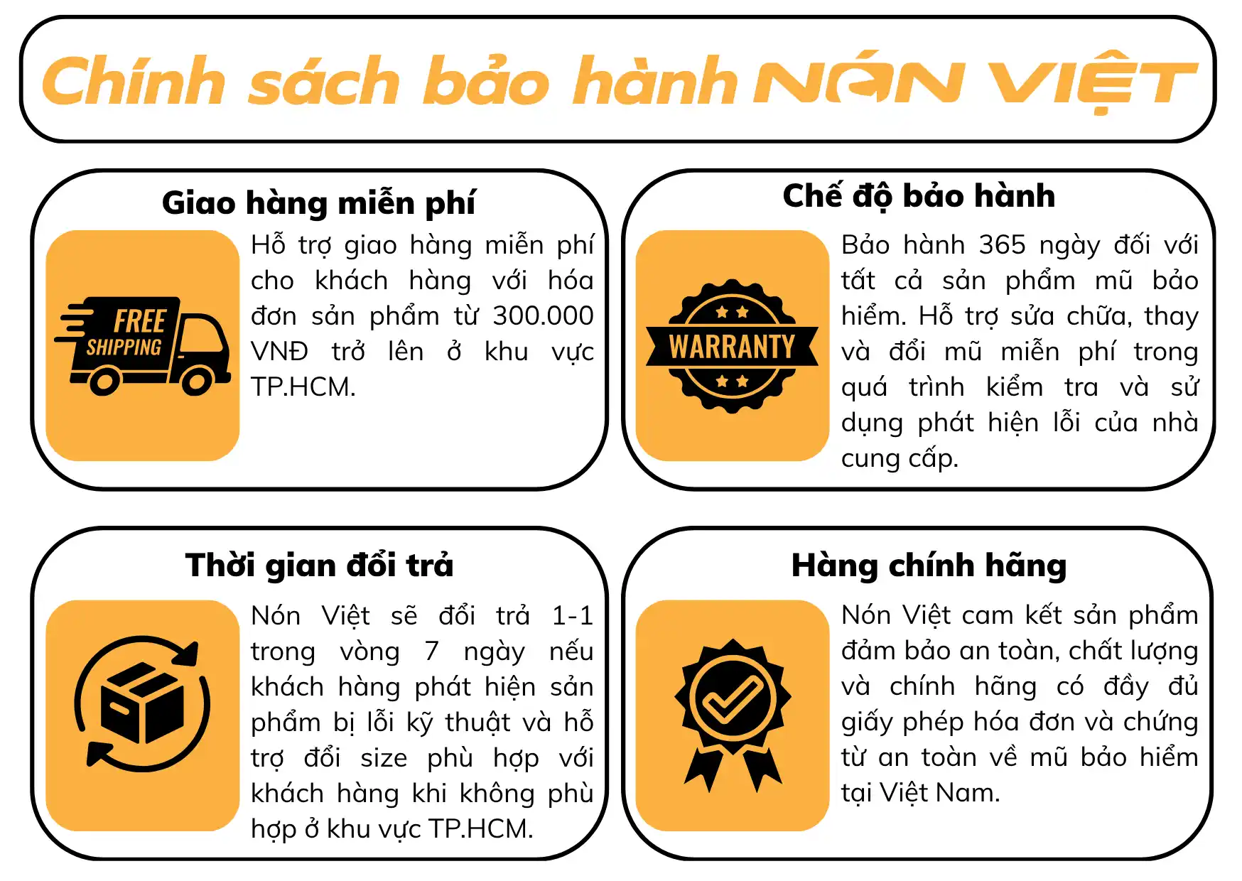 Mỗi chiếc mũ bảo hiểm nửa đầu kính âm do Nón Việt phân phối đều được sản xuất theo quy trình nghiêm ngặt, đảm bảo đạt các tiêu chuẩn chất lượng và an toàn của Việt Nam.